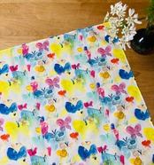 コットンローンの薄くふんわりとした生地にプリントしています。